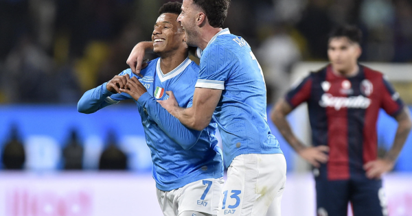 Questa volta la vittima è il Bologna, ubriacato dalle doti di palleggio dei partenopei, sempre in controllo della partita. La squadra di Vincenzo Italiano non ripete il bel secondo tempo che le aveva permesso di riacciuffare l'Inter e soffre per tutti i 90 minuti le folate avversarie, guidate da un Neres incontenibile - a segno nel primo tempo con una perla di sinistro da fuori area e nel secondo con un morbido pallonetto che punisce l'unico, ma grave, errore di Ravaglia - e sempre ben assistito da Hojilund.